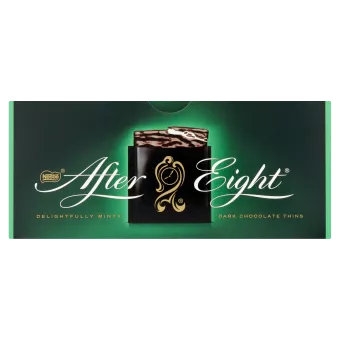 NESTLÉ AFTER EIGHT 200g is een doosje vol heerlijke dunne pepermunt pralines omhuld met pure chocolade.